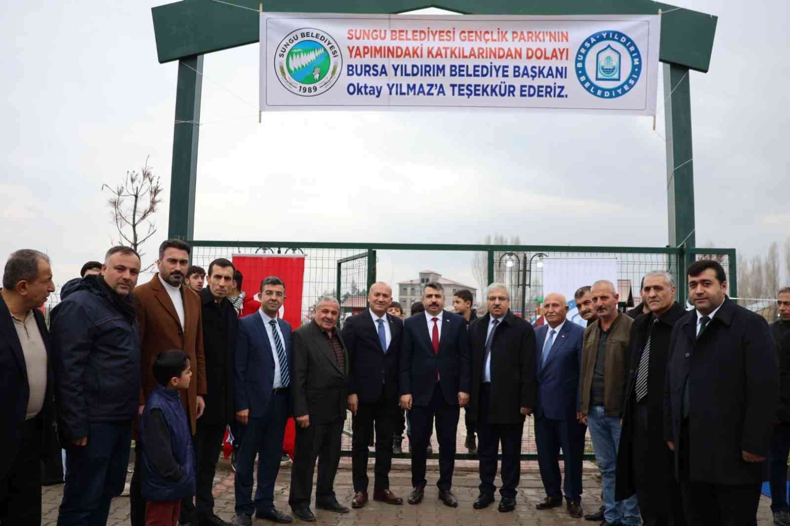 Programa Yıldırım Belediye Başkanı Oktay Yılmaz’ın yanı sıra, Büyükşehir Belediye Başkanı Alinur Aktaş, Muş Belediye Başkanı Feyat Asya, Sungu Belediye Başkanı Mehmet Salih Gürtürk, AK Parti Bursa Milletvekili Muhammet Müfit Aydın, AK Parti Muş Milletvekili Mehmet Emin Şimşek ve önceki dönem Muş Belediye Başkanı Necmettin Dede, siyasi parti temsilcileri, meclis üyeleri ve vatandaşlar katıldı. Açılış töreninde konuşan Yıldırım Belediye Başkanı Oktay Yılmaz, Sungu Gençlik Parkı’nın kardeş ilçeye hayırlı olmasını diledi.