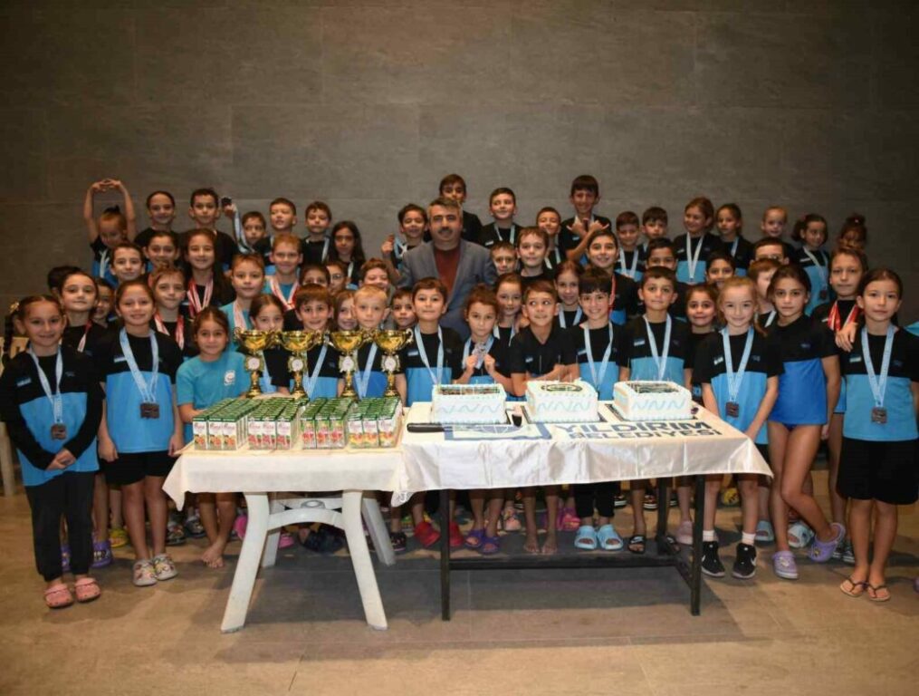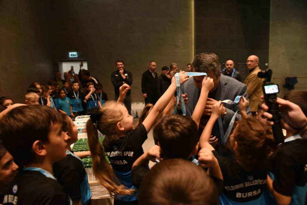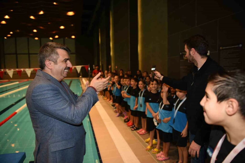 Yıldırım Belediye Başkanı Oktay Yılmaz, 29 Ekim Cumhuriyet Kupası ve 10 Kasım Atatürk’ü Anma Yüzme Yarışlarında takım olarak tüm kategorilerde şampiyon olan Yıldırım’ın altın kulaçlarıyla buluştu.