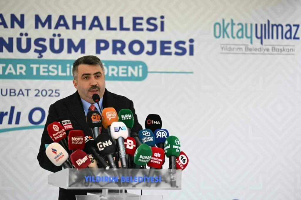 Mimarsinan Mahallesi’nde bölgeye örnek olacak projenin 1 yıl gibi kısa bir sürede tamamlandığını söyleyen Yıldırım Belediye Başkanı Oktay Yılmaz, “Bugün Yıldırım’ın geleceğine hizmet eden vatandaşlarımızı sağlıklı, huzurlu, modern bir yaşam sunan önemli bir projeyi daha bitirmenin mutluluğunu yaşıyoruz. Yaklaşık 1 yıl önce Çevre Şehircilik ve İklim Değişikliği Bakanlığı tarafından rezerv alan ilan edilen 6 bin metrekarelik bu adada kentsel dönüşüm temel atma töreni gerçekleştirmiştik. 1 yıl sonra da eserimiz ortada. Bu sürece destek veren hak sahiplerini kutluyorum. Bu adada 130 konut yer alıyor, 2 bin 118 metrekare işyeri, 600 metrekare de park alanı kazandırmış oluyoruz” dedi.