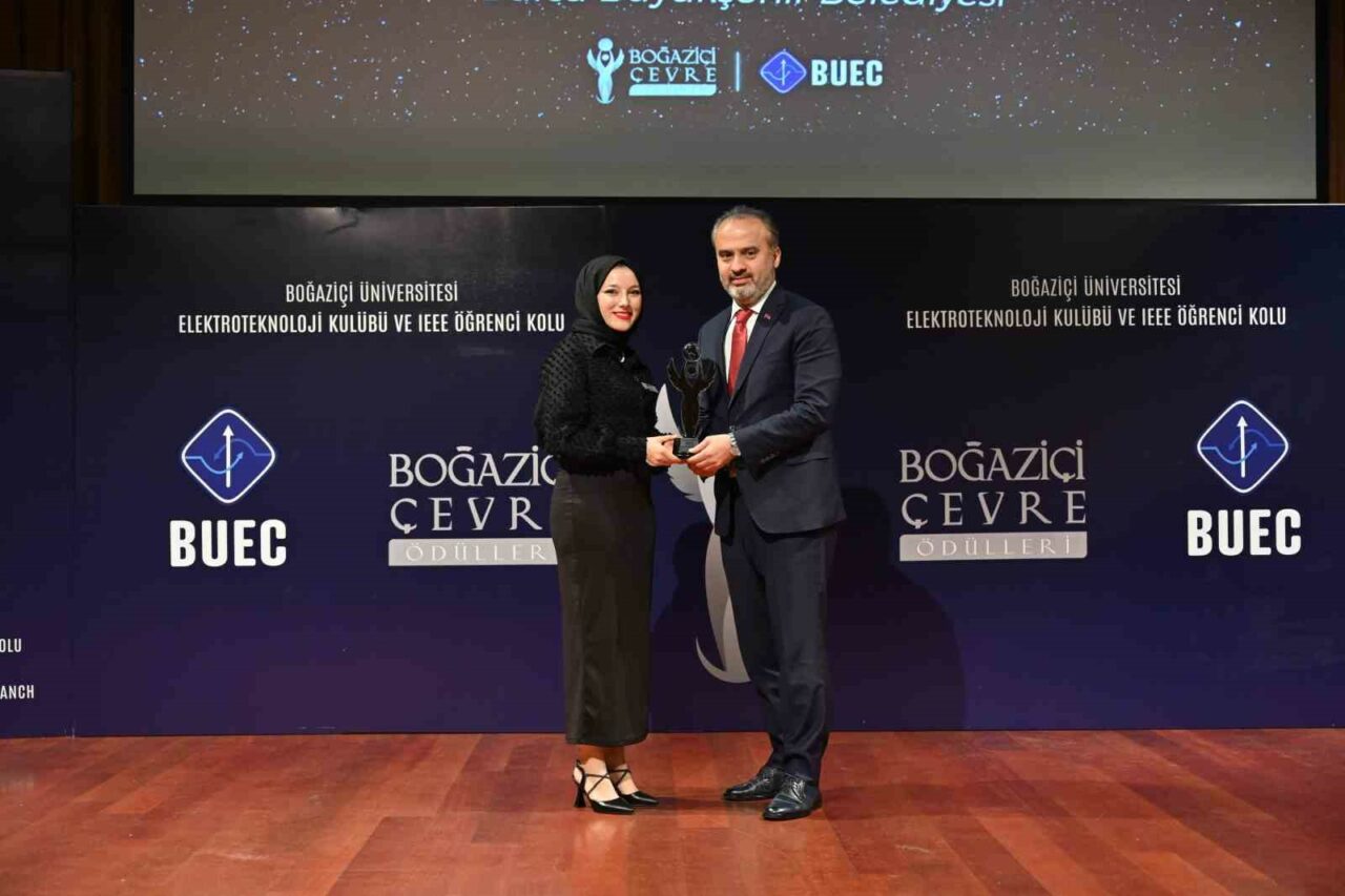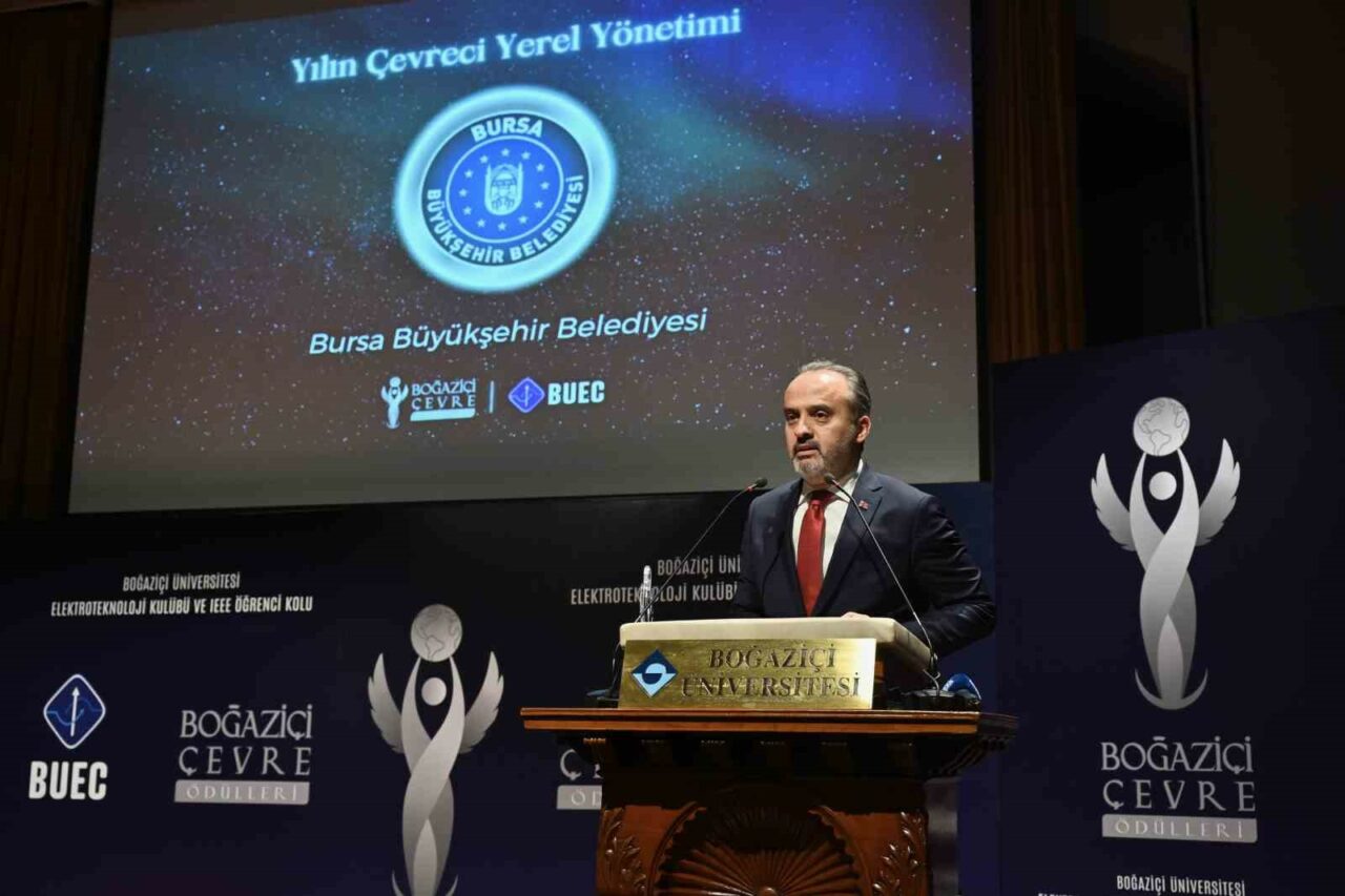 Boğaziçi Üniversitesi Elektroteknoloji Kulübü tarafından organize edilen ’Boğaziçi Çevre Ödülleri’ töreninde ’Yılın Çevreci Yerel Yönetimi’ ödülü Bursa Büyükşehir Belediyesi’nin oldu. Boğaziçi Üniversitesi Elektroteknoloji Kulübü’nün bu yıl 3’üncüsü düzenlediği ’Boğaziçi Çevre Ödülleri’ programı Boğaziçi Üniversitesi Güney Kampüsü’nde gerçekleştirildi. Ödül törenine alanında birçok uzman isim katıldı. Ödül töreninde bu yıl adaylar, 350 binin üzerinde halk oylaması ve jüri oylaması ile seçildi. Çevreyi korumaya yönelik çalışmalar gerçekleştiren ve çalışmalarını doğayı korumaya yönelik gerçekleştiren firmalar ödüllerini aldı. Törende ’Yılın Çevreci Yerel Yönetimi’ ödülünü Bursa Büyükşehir Belediyesi aldı. Bursa Büyükşehir Belediye Başkanı Alinur Aktaş, ödülü Boğaziçi Üniversitesi Elektroteknoloji Kulübü ve IEEE öğrenci kolu sponsorluktan sorumlu Yönetim Kurulu Üyesi Ceyda Doğan’ın elinden aldı.