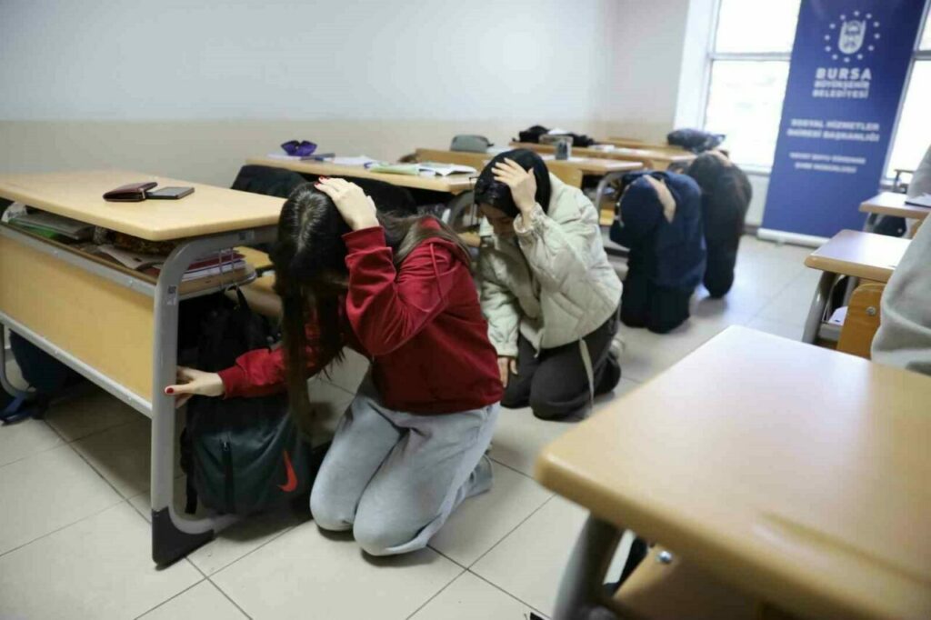 Bursa Büyükşehir Belediyesi, olabilecek afet ve acil durumlara karşı hazırlıklı olmak amacıyla Hürriyet YKS Hazırlık Merkezi’nde deprem ve tahliye tatbikatı gerçekleştirdi. Bursa Büyükşehir Belediyesi Afet İşleri Dairesi Başkanlığı Afet Koordinasyon Şube Müdürlüğü koordinesinde Hürriyet YKS Hazırlık Merkezi’nde yapılan deprem tatbikatı gerçeği aratmadı. Alarm sesiyle birlikte ders sıralarının yanında çöp-kapan-tutun taktiğini uygulayan 600 öğrenci ve 45 […]