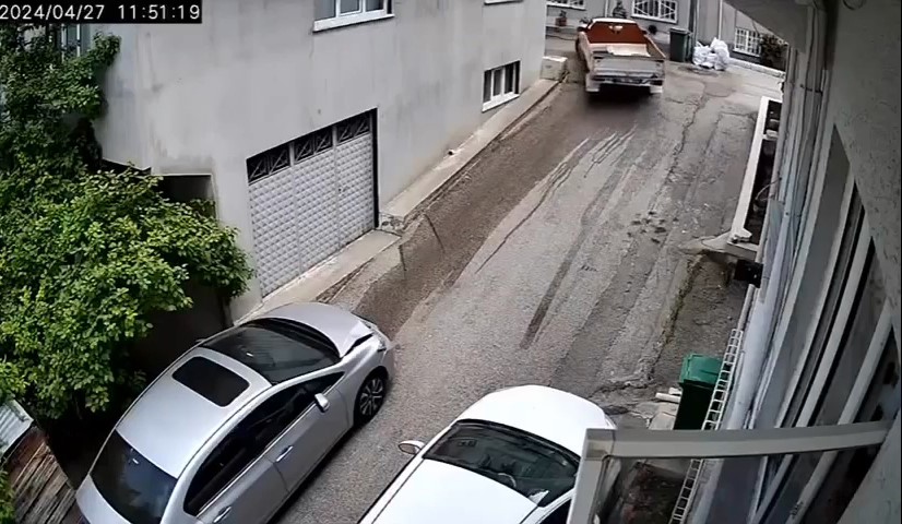 Olay, merkez Osmangazi ilçesi Yenibağlar Mahallesi’nde meydana geldi. Edinilen bilgiye göre, kasalı otomobili ile yokuşa inen sürücü, çıkamadı. Gaz ayarını iyi yapamayan sürücü, park halindeki otomobile çarptı. Kaza yaptığını fark ettikten sonra patinaj yaparak yokuştan çıkan sürücü, kaçarak kayıplara karıştı. O anlar saniye saniye güvenlik kamerasına yansıdı.