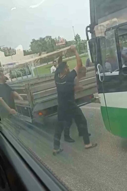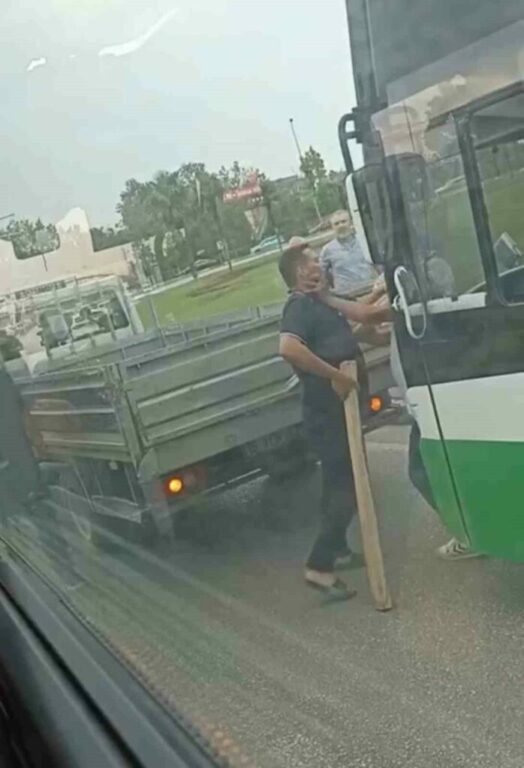 Bursa’da çıkan yol tartışmasında, iki sürücü birbirlerine kalaslarla saldırdı. O anlar kameraya yansırken, kavgayı çevredekiler güçlükle ayırdı.