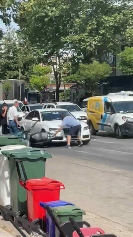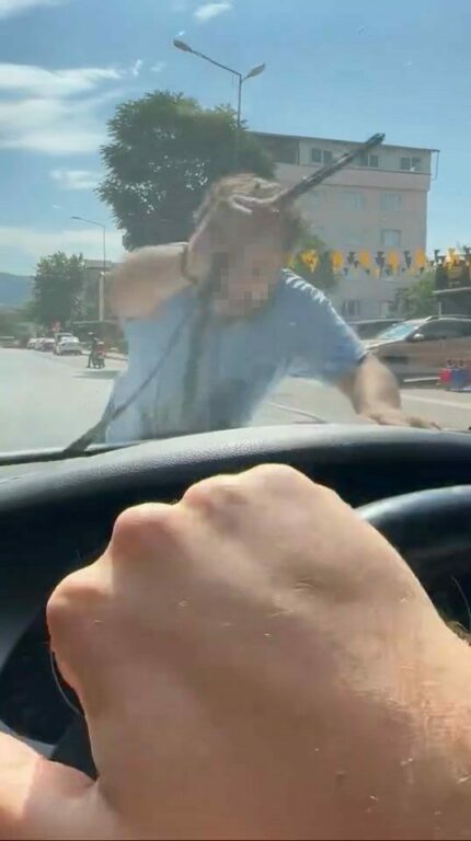 Olay, Yıldırım ilçesi Eğitim Caddesi üzerinde meydana geldi. İddiaya göre, trafikte yol verme tartışması nedeniyle bir motosiklet ve otomobil sürücüsü arasında tartışma yaşandı. Tartışmanın hararetlenmesi üzerine motosikletinden inen sürücü, aracın önünü kesip sileceği kırdı. Gaza basan sürücünün uyarısına rağmen bir süre otomobilin önünde direnen şahıs, bu kez de cama yumruk attı. O anlar kameraya yansırken, olayla ilgili tahkikat başlatıldı.