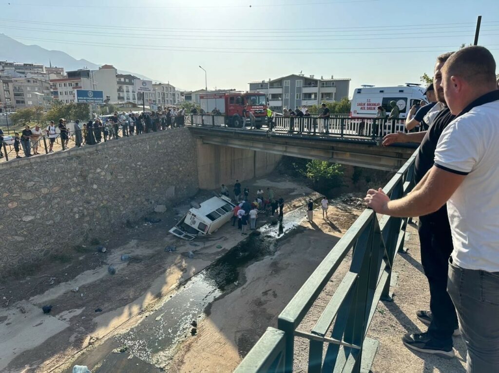 Öte yandan minibüsün dereye uçma anı başka bir aracın kamerasına ile HTS kamerasına saniye saniye yansıdı. Hastanede tedavi altına alınan sürücü Yusuf Aktaş’ın vücudunun çeşitli noktalarında kırıkların bulunduğunu ancak sağlık durumunun iyi olduğu bildirildi.