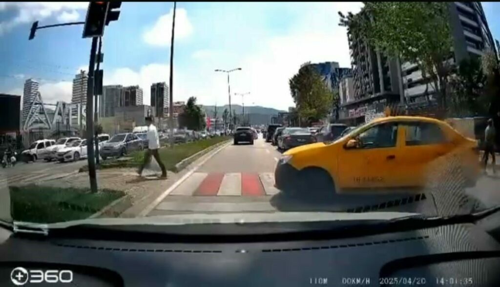 Bursa’da bir taksi şoförü, yolu uzatmamak için yaya geçidini işgal etti. Taksi şoförünün kullandığı ilginç yöntem, araç kamerasına yansıdı.