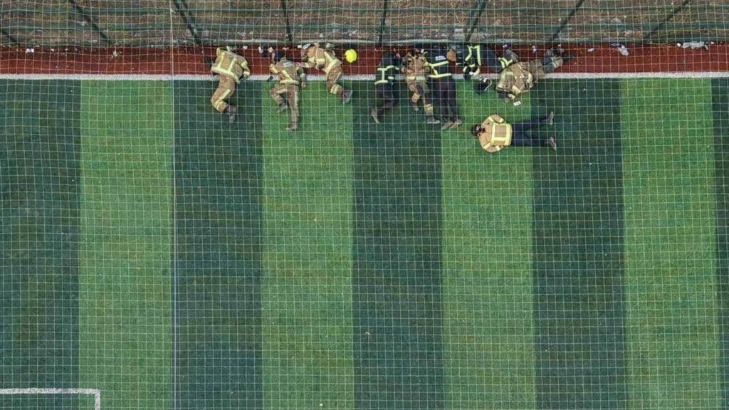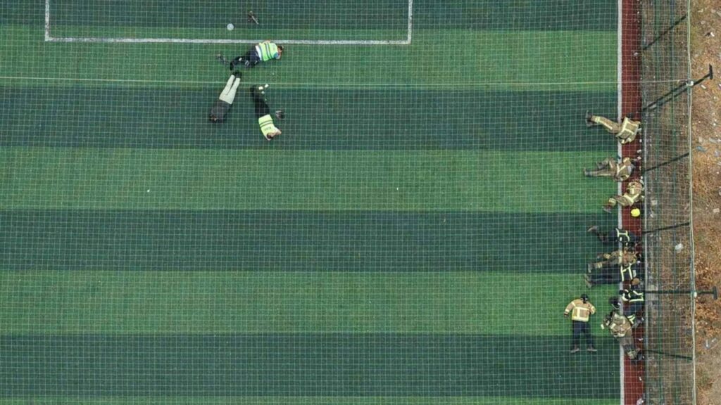 Bursa’da üç ilçeyi etkileyen ve 3 köyün boşaltılmasına sebep olan yangında 12 saat boyunca fedakarca çalışan ve ormanın derinliklerine girip alevleri bastıran itfaiye erleri bir halı sahada istirahate çekildi. Halı sahada zor şartlarda birkaç saatliğine dinlenip yeniden göreve gitmek için hazırlanan itfaiye erleri dikkat çeken görüntüler oluşturdu.