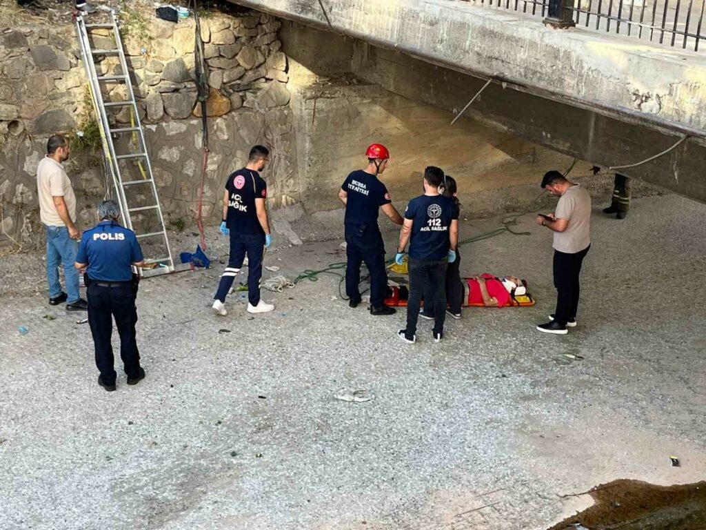 Olay, saat 18.00 sıralarında merkez Osmangazi ilçesi Ali Ferruh Yücel Caddesi’nin yanında bulunan yolda meydana geldi. Edinilen bilgiye göre, derenin yanında yürüyüş yapan Gülfet E. (48), bir anda dengesini kaybederek dere yatağına düştü. Çevredeki vatandaşlar, durumu 112 Acil Çağrı Merkezi’ne bildirdi. İhbar üzerine olay yerine polis, sağlık ve itfaiye ekipleri sevk edildi. Polis ekipleri çevrede güvenlik önlemi alırken, sağlık ve itfaiye ekipleri dere yatağına inerek talihsiz kadına ilk müdahaleyi gerçekleştirdi. Yapılan ilk müdahale sonrası Gülfet E., sedye ile itfaiye ekiplerince dere yatağından çıkartıldı. Yaralı kadın, Bursa Yüksek İhtisas Eğitim ve Araştırma Hastanesi’ne kaldırıldı.