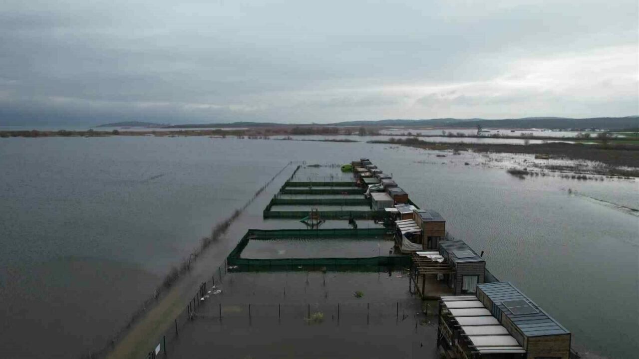 Bursa’da Ulubat Gölü’nün taşmasıyla göle komşu Akçalar Mahallesi’nde onlarca tiny house ve hobi evi sular altında kaldı. Göl havzasının ne denli geniş bir alan yayıldığı havadan gözler önüne serildi.