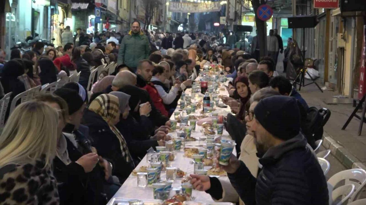 Bursa’nın en büyük ve en köklü mahallelerinden olan Namık Kemal ve Zafer Mahallesi gençlerinin organize ettiği cadde iftarı 4 bin 500 kişiyi buluşturdu. Yüzlerce metre uzunluğunda iftar sofrası büyük ilgi gördü. 3 bin kişinin gelmesi beklenen mahalle iftarına 4 bin 500 kişi katıldı. Kurulan devasa sofra dron ile havadan görüntülendi.
