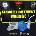 Karacabey İlçe Emniyet Müdürlüğü Asayiş Büro Amirliği ekipleri, uyuşturucu ticareti yaptığı belirlenen E.K. (47)’yi teknik takibe aldı. Polis ekiplerinin yaptığı teknik ve fizikî takip sonucunda şüphelinin üzerinde yapılan aramada, esrar, 1 adet ruhsatsız tabanca ve 5 adet fişek ele geçirildi. Şüpheli E. K.’nın ikamet adresinde yapılan aramada ise kannobinoid (bonzai), methamfetamin, esrar ve 20 adet fişek ele geçirildi.