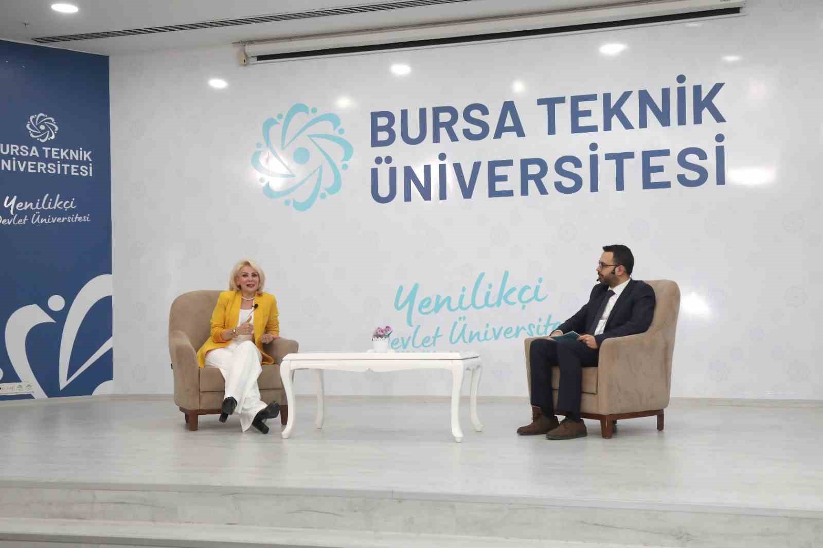 TRT Haber’in sevilen yapımlarından ‘Ömür Dediğin’ programının yapımcılığını ve sunuculuğunu üstlenen Zeliha İlhan Doymuş, Bursa Teknik Üniversitesi (BTÜ) öğrencileriyle buluştu. Her çarşamba günü Doç. Dr. İbrahim Özsarı’nın moderatörlüğünde gerçekleştirilen BTÜ Konuşmaları’nın konuğu olan Zeliha İlhan Doymuş, ‘Ömür Dediğin’ programının hayata çıkış hikâyesini, programın arka planını ve kendisinde bıraktığı izleri paylaştı. 17 yıldır ‘Ömür Dediğin’ programını sürdürdüklerini kaydeden Zeliha İlhan Doymuş, “800 aileyi ziyaret ettik, birçok ödülün sahibi olduk. En son da Cumhurbaşkanımız Sayın Recep Tayyip Erdoğan’ın elinden Ömür Boyu Saygı Ödülü’nü aldık” dedi. Programın ortaya çıkış hikâyesini anlatan İlhan Doymuş, “2007 yılında bir prodüktörümüz yaşlılarla röportaj yaparak onların dünyasına inmek istedi ve ekibinde ben de bulundum. Programın adını o koydu formatın bugünkü hale getirilmesine ise ben yardımcı oldum. Ömür Dediğin 17 yıldır yayında, bugün proje hem eğlendiriyor hem bilgilendiriyor. ‘Ömür Dediğin’ aslında kısa film tadında bir belgesel. Orada gerçek karakterler söz konusu. O karakterler kendi hayatlarını anlatırken müziklerle bunu kısa film tadında belgesele dönüştürdük” diye konuştu.