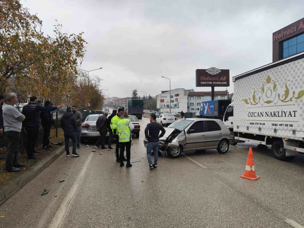 Bursa’nın İnegöl ilçesinde meydana gelen kazada 3 otomobilin karıştığı kazada 1’i bebek 3 kişi yaralandı